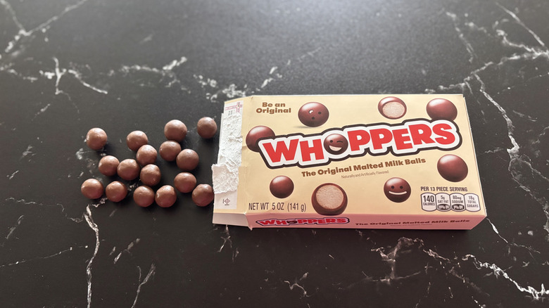 Oh, Whoppers — they seem like innocent-enough little balls of chocolate, but once you bite into one, there's no escaping the almost painful crunch. Indeed, the malted milk ball candy that is Whoppers is undeniably original, though I'm not quite sold on that originality being a good thing.