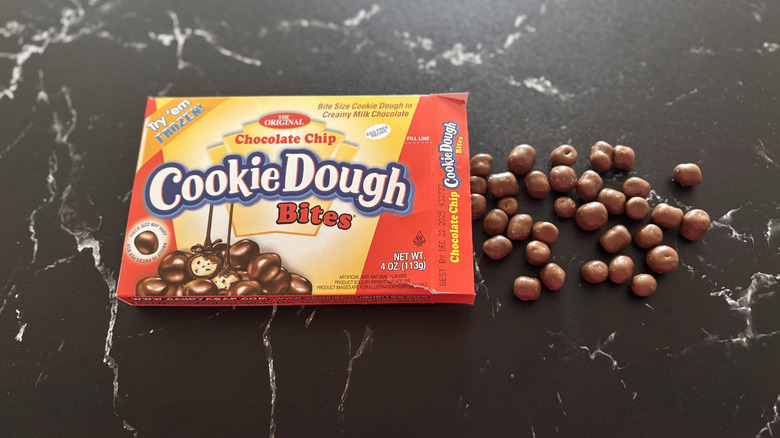 There's no denying that people are crazy for cookie dough, though the treat is most often consumed by way of chocolate chip cookie dough ice cream or via edible cookie dough recipes. Then there's Chocolate Chip Cookie Dough Bites, the boxed candy that single-handedly brought the cookie dough revolution to the big screen (or at least, in the room with it).