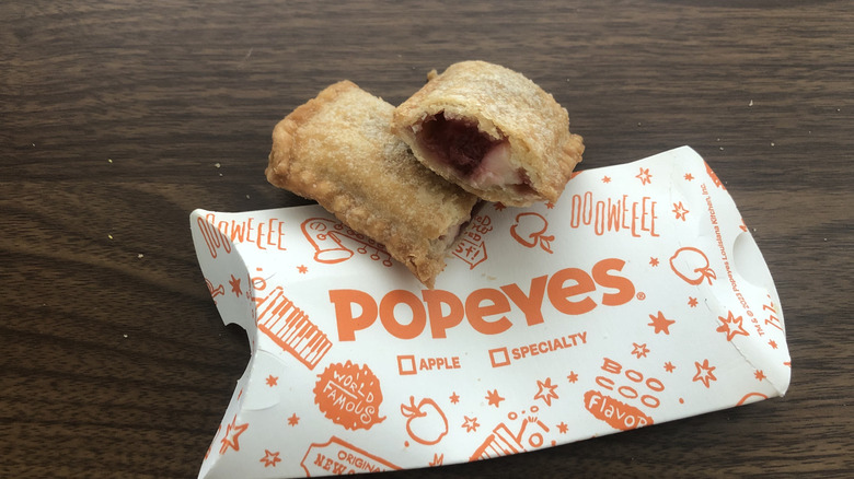 The other half is the filling. If fruit was involved (as it was in most cases), it couldn't be artificial, too sweet, or too goopy — the more real fruit chunks, the better. Cream fillings, like the ones from McDonald's and Popeyes, earned extra points for that added richness. However, it was Popeyes' classic recipe instead that ended up as the apple of my eye.