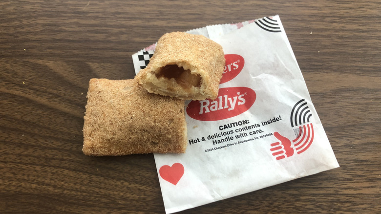 Warning: Cinnamon dust will get absolutely everywhere when you eat this pie. I would recommend waiting until you're out of your car to eat it ... or maybe even until you're perched over a sink. The confection – which Rally's and its partner in crime, Checkers, actually refer to as an apple pie turnover –is so messy because it's rolled in a generous layer of cinnamon sugar. This addition ups the ante in terms of sweetness, blanketing each bite in a mixture that is not unlike the one you would find adhered to a mouthwatering cinnamon sugar Auntie Anne's pretzel. Yum.