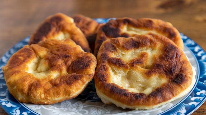 Fry bread, the Navajo dish made from flour, lard, salt, and water, has a creation story mired in violence and regret — despite this, the bread remains popular throughout the United States today. Created with just four basic ingredients, today's fry bread is often enhanced with the addition of baking soda and milk to achieve a lighter and slightly creamier texture. The dough is fried in oil and can be eaten alone or alongside chili, stew, or even topped with jam or honey for a sweeter treat. While many consider fry bread a comfort food, for others, the consumption of a food that is a symbol of persecution raises an ethical dilemma.