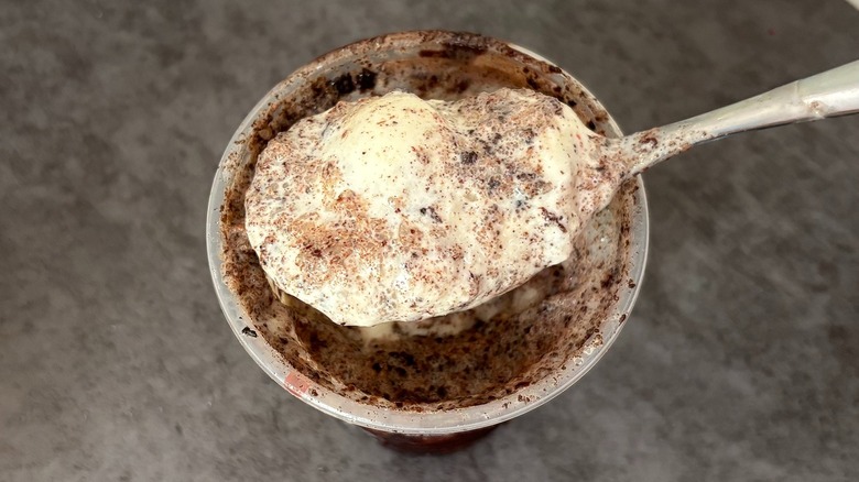 The brownie batter chocolate Frosty Swirl was inarguably better than the vanilla version of the same — after all, if you need to satisfy a chocolate craving, why not go all out? If there's one surefire way to improve the classic chocolate Frosty, it's with more chocolate, and this certainly fits the bill. Similarly to my previous pick, I loved the brownie batter texture here, especially when contrasted with the smooth and velvety chocolate base.