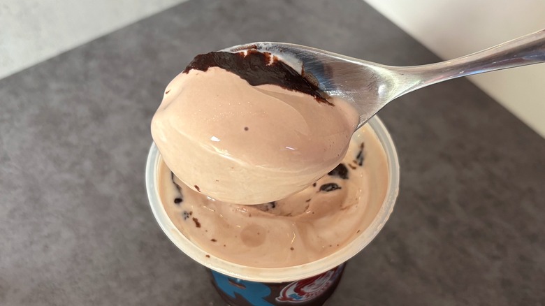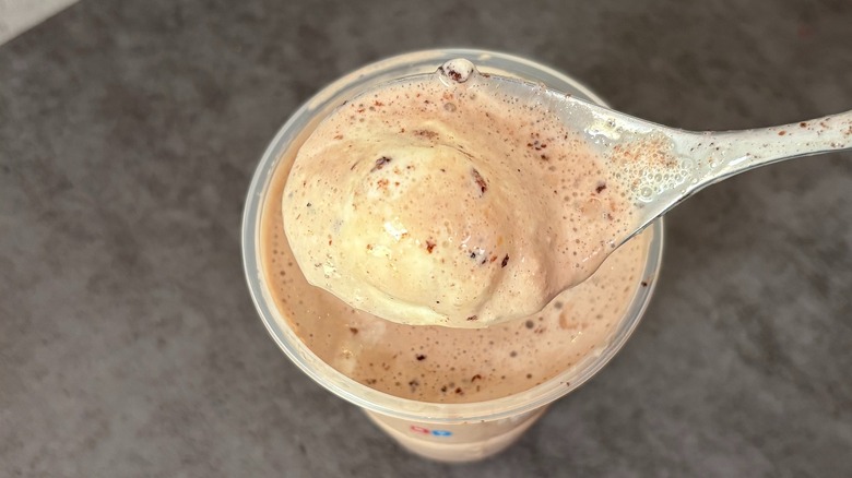 The chocolate swirl was deep and rich, but perhaps my favorite part of this Frosty came as a surprise: its texture. It's surprisingly spot-on to what brownie batter is like texturally. I was expecting just a rich chocolate sauce, but nope. The thick, even slightly coarse texture lent a great mouthfeel to this Frosty, and the brownie batter itself tasted great to boot. Brownie fans shouldn't sleep on this one — though if you love chocolate on chocolate, you should probably go for my next pick.