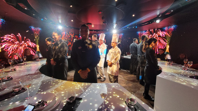 Not to go unmentioned amid the high-tech projections and delicious food is the skill, professionalism, and smiling faces of the numerous waitstaff, chefs, and hosts who labor long and hard to make this complex meal a seamless success for its participants. It felt like the staff were co-participants in the journey, excited to reveal every surprise and tasty treat.