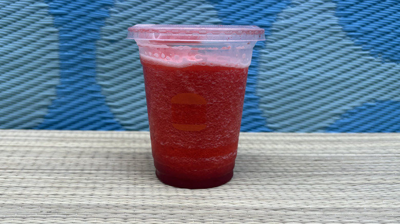 Based on the made-up name, Lemonberry is the restaurant's concoction, a blend of freshly squeezed lemons and strawberries. The important thing here is lemon juice, not lemonade, so it's tart without that syrupy taste. Its bright pink hue might allude to a strawberry-forward flavor, which is too often overly sweet, but this is named Lemonberry for a reason. Lemons first, strawberries second. Despite being named after a fictional fruit, this slushie doesn't taste artificial whatsoever. The strawberry flavor is somewhat delicate, with literal pieces of the fruit being a constant reminder of its freshness.