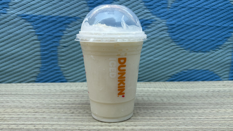 The frozen options are a bit more limited these days, but luckily, Dunkin' still has a Coolatta that's worth sipping on — the vanilla bean. Some may argue it's more of a milkshake than a slushie, with its creaminess being outweighed by the icy chew. There's just something about Dunkin's small beads of ice that makes the frozen drinks so irresistible. The vanilla flavor is strong but balanced. It's slightly artificial tasting, but comforting like a soft serve vanilla ice cream. If it's somehow not creamy enough, there's always room for whipped cream.