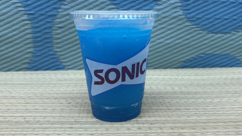 We'll start with the best of the best — Sonic. Not to say Sonic is the end-all for fast food frozen drinks, but the chain has made quite a name for itself with its blenders. It might look like a Blue Hawaiian cocktail, but surprisingly, there's no blue curaçao in Sonic's blue coconut slush. This is one of those drinks that really tastes like its color. It's hard to put the taste into words other than "blue," but the subtle hints of coconut really make the whole slushie.