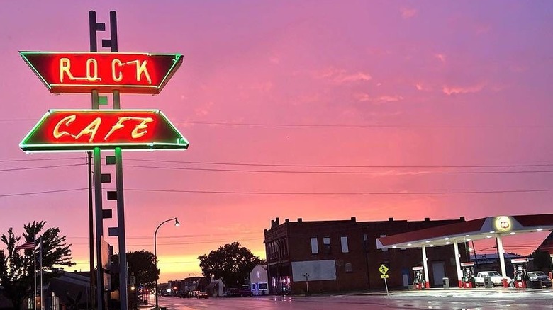 The Rock Café was constructed from the stone excavated to pave Route 66 and has welcomed travelers along the route since 1939. The Stroud, Oklahoma diner has faced some ups and downs over the decades, but two original pieces remain. The Rock Café's neon sign is a beacon of Americana that has signaled hungry drivers since the 1940s when the bustling restaurant was open 24 hours a day. After surviving a fire in 2008, the neon sign was restored in 2024.