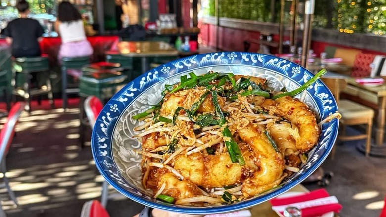 The Formosa Cafe opened on Route 66 in West Hollywood across the street from the Samuel Goldwyn studio in 1939. The location attracted hungry film stars working in the neighborhood like John Wayne and Ava Gardner. It reopened in 2019 after closing and undergoing a $2 million renovation. The restaurant collaborated with archivists and hospitality experts to create a food and beverage menu based on the Formosa Cafe's culinary journey over the years. Today, visitors chow down on dishes like walnut shrimp and orange chicken while admiring the black and white photos of famous diners where Old Hollywood glamour meets Route 66 nostalgia.