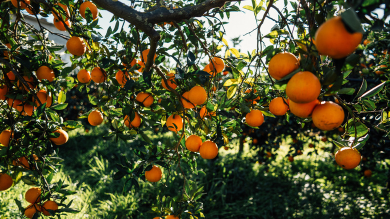 While Florida's oranges were already more suited to juice production, any chance you would have of seeing them for sale in a store has gone out the window with recent drop-offs in production. By 2025, Florida's orange production had fallen a whopping 95% from its highest peak, according to the USDA. Some of this is due to the major hurricanes that have hit Florida's citrus production regions and destroyed trees, but an even bigger issue is citrus greening. This is a disease, also called Huanglongbing or HLB, which is spread by an Asian insect that infects citrus trees, including oranges. The insect spreads a bacteria that feeds on the tree, causing the signature green color and causing smaller more sour fruit to be produced before eventually killing the tree.