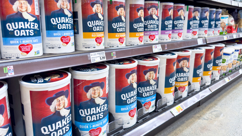 If you're in the grocery store for oatmeal, there's a good chance you'll be adding a canister of Quaker Oats to your cart. After all, it is one of the biggest and most recognizable oatmeal brands in the U.S. But, of course, you don't become a household name overnight. Quaker Oats has a long history. Its journey can be traced all the way back to the mid to late 1800s.