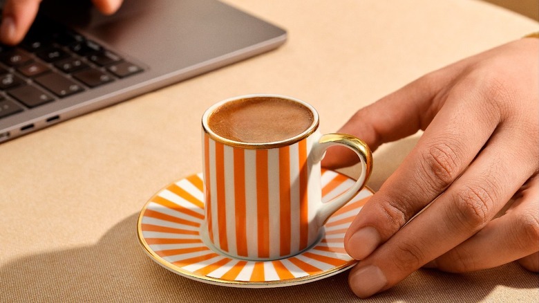 Predominantly made from arabica beans, that thick and strong pick-me-up is an essential morning and afternoon ritual among neighbors and families, and it's generally served after big lunches, at business meetings, and even at funerals. Those little porcelain or ceramic coffee cups are typically hand-painted with motifs like flowers, the evil eye, or the national flag, and they're sold in souvenir shops.