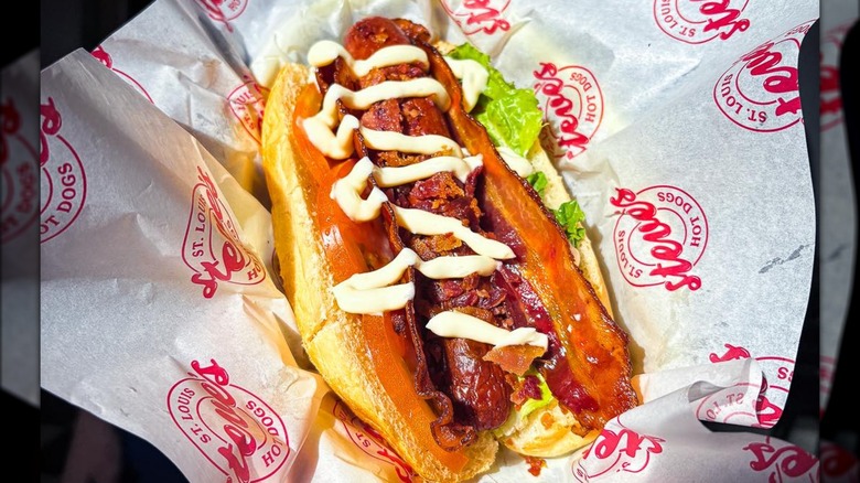 Steve's Hot Dogs has several locations in Missouri, and in addition to the classics, there's a vegan dog that gets some serious praise in the state. Of course, there's also a BBLT hot dog, which has two Bs because, yes: It's got double the bacon you're expecting. Customers note the grilled dogs are outstanding, and served with fresh, creative toppings. In fact, anyone who loves an extra spicy profile will be right at home.