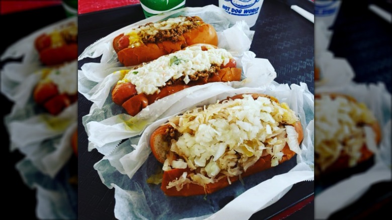 Jack's Cosmic Dogs has a massive fan in the self-proclaimed hot dog lover Alton Brown. In one segment of "The Best Thing I Ever Ate," he named Jack's as having the best slaw dogs around. Others agree, with Jack's blue cheese-based slaw also getting a ton of love. The sweet potato mustard gets almost as much attention, and when you add cheerwine on the side, it's the kind of meal that defines childhood in the summertime.