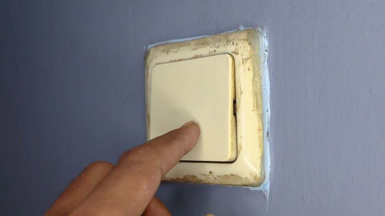 Light fixtures are also frequently forgotten, although they can collect dust, dirt, and even insects, which dims bulb output by up to 30% (via HuffPost). Dead bugs, cobwebs, and soot stains are also common on glass globes and bulbs. To clean safely, always turn off the power at the breaker, especially for outlets and fixtures. Wipe switch plates and outlet covers with a damp cloth and mild cleaner. For light fixtures, remove detachable parts, such as glass or crystal covers, and soak them in warm, soapy water or a vinegar solution. Use a soft cloth or brush to clean the main fixture.