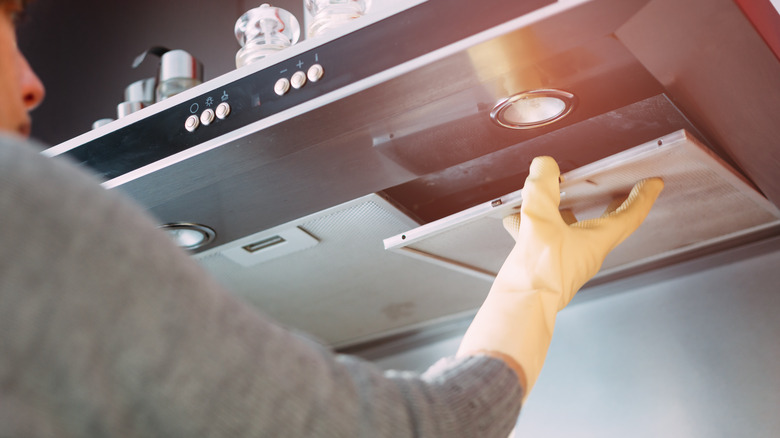 Be sure to wipe the inside and outside of the hood housing, especially the underside where drips form and grease collects. Use a microfiber cloth or sponge soaked in warm, soapy water to wipe the inside and outside of the hood, moving in the direction of the grain. For stubborn grease, a baking soda and vinegar paste works wonders. Avoid abrasive materials and keep the cleaner away from light bulbs and electrical components. Wipe the fan blades with soapy water, then rinse and dry completely. Don't forget to check the vent as grease buildup can restrict airflow, reduce performance, or pose a fire risk. Do this one every three months, depending on how often you cook.
