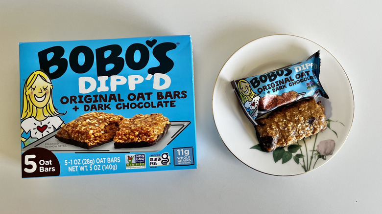 I've tried many Bobo's items, but this was my first time trying something from the Dipp'd line. These gluten-free oat bars are dunked in dark chocolate, so the underside has a tasty, rich chocolate layer. This offered a unique flavor and appearance that none of the other chocolatey options on this list have. The dark chocolate component also provides a more bittersweet flavor if you prefer something beyond your basic milk chocolate. The bar isn't too sweet despite being dipped in chocolate. It has a mild coconutty essence because it contains coconut oil, but it's not overwhelming.