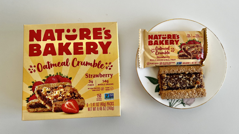 Olyra Foods offers something slightly different than your standard oat bar, as the whole grain flour base is a combination of spelt, lupine, barley, and oat. This doesn't have any visible oats like some of the other bars on this list, giving it a smoother texture on the palate. I've tried many Olyra products and can safely recommend any of the brand's breakfast biscuits as they are all tasty and delightfully fruity — whether you want strawberry, blueberry, or apple cinnamon (a popular oat breakfast bar flavor, as it turns out). They're somewhat cookie-shaped, kind of like Newtons if they were round.