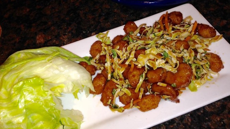 Just because you're eating at Red Lobster doesn't mean that you have to stick with the lobster and lobster alone. If you're more of a shrimp person, you're in luck: The chain offers a wide array of different shrimp dishes. But one dish that you're not going to find on the menu is the crispy shrimp lettuce wraps. It made its debut on the Red Lobster menu all the way back in 2014, and it featured crispy shrimp in a sweet and spicy glaze along with some iceberg lettuce leaves. The idea was to wrap the shrimp in the lettuce, creating a fresh sort of wrap that would appeal to diners looking for something on the fresher, lighter end of the spectrum.