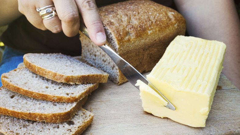 Usually, a cheese and onion sandwich comes in wholemeal, seeded bread, although some stores also have them available on sliced white. To best imitate a U.K. grocery store sandwich, it should also be sliced pretty thin. If you're in the U.S. and want an authentic sarnie, you might want to check the ingredients list on the back of your loaf for sugar, too, as bread sold in the U.S. often contains much more than bread sold in the U.K. In the U.K., most sliced, packaged bread contains 2-4% sugar, per the U.K.'s Flour Advisory Bureau.