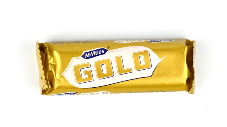 Another of McVitie's biscuit confections, Gold Bars are unabashedly sweet. Imagine a sugar cookie shaped like a bar of shortbread, smothered in a white caramel coating, and you'll have some idea of what a Gold Bar is. One of the most inspired aspects of this treat is the proportion of coating to biscuit. Most cookies that are sold with a coating only feature a vanishingly thin layer of the stuff. McVitie's own chocolate-covered digestives, for example, are 70 percent biscuit and 30 percent chocolatey coating. Gold Bars are the reverse — 70 percent coating and 30 percent biscuit — giving them a decadent quality.