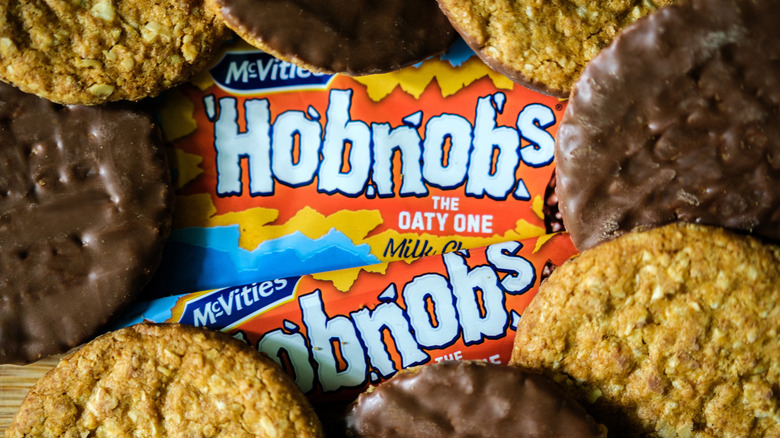Many people might assume that the name of the biscuit stems from the word "hobnob," which means to schmooze or socialize. However, in 2025, Pam Langworthy, one of the masterminds who created the biscuit in the 1980s, revealed the true origin. In an interview on Channel 4's "The Secret World of Biscuits," she said (via the Mirror) that it was a play on words. Before the biscuit was introduced to the public, focus groups pointed to its knobbly edges and said that if it was made at home, it would have been made on a hob (stove).