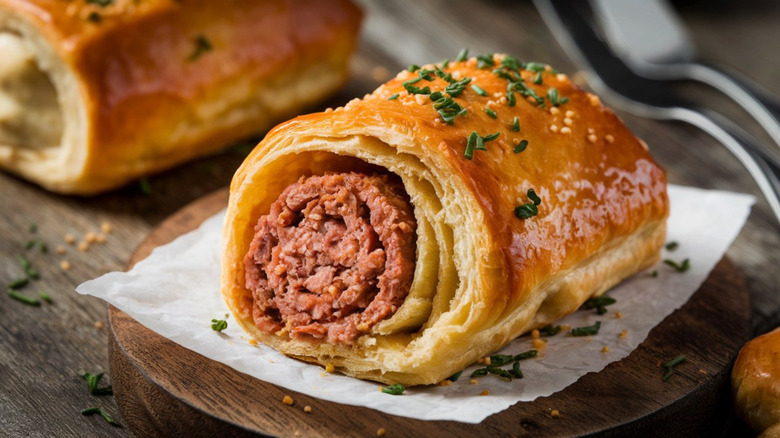 There's nothing stopping Americans from adopting sausage rolls. It isn't a trademarked or secret recipe, and given our proclivity for consuming meat, it seems like the perfect fit. Somehow, though, it hasn't become the ubiquitous snack that it is across the pond. Made of a juicy sausage link encased in flaky pastry, it's a blissfully simple sausage roll recipe that hits all the right flavor and texture notes.