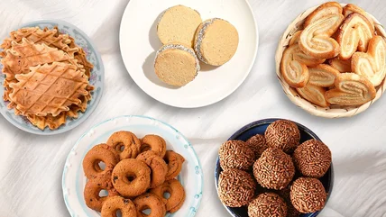 An iconic cookie from Algeria, samsa are crispy, triangular-shaped treats made with phyllo pastry and a fragrant, nutty filling. They're often served during Ramadan, the Islamic holy month of fasting, when families and friends gather each evening to break their fast with a meal called ifṭār.