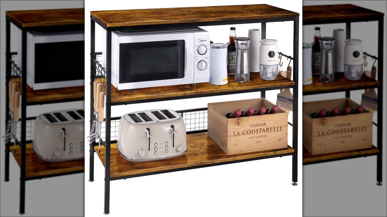 Tons of customers love this one for a sleek design, wood finish, and a look that fits in with any decor. Although it seems like that's a lot of weight to put on a rolling cart, there are a ton of reviews that say that it lives up to the claims, and comfortably holds even the heaviest of small appliances. It's versatile, too: Some opt for turning it into a coffee bar or drinks station, and praise it for its spaciousness.
