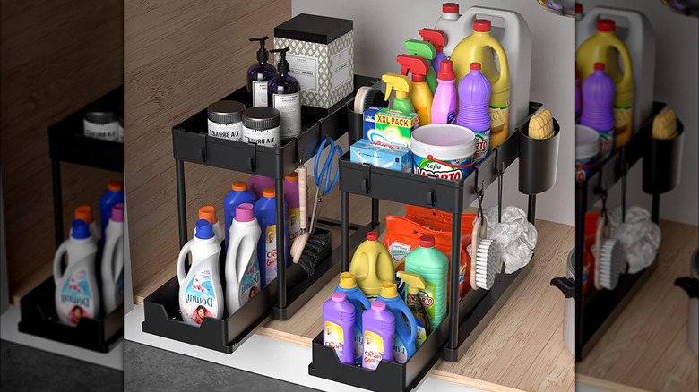 If you feel you're short on space in the kitchen, keep in mind that there are several clever storage spaces you could be overlooking. That includes the space under your sink, as it's the perfect place for things like extra sponges and brushes, packs of rubber gloves, and back-up bottles of dish soap. Rather than just putting everything on the floor of the cabinet, pick up Phancir's sliding storage organizers. In addition to having two tiers of storage space, the bottom tier slides out for easy access.