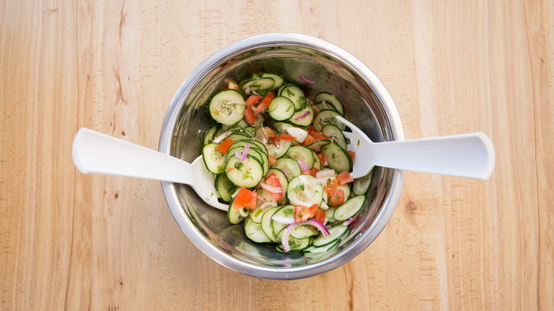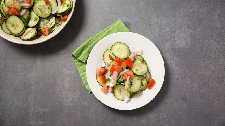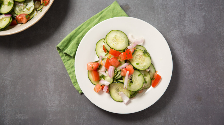 Cucumbers are a versatile vegetable used in Mexican cuisine, and Mexicans often use this crispy, refreshing vegetable in salads. Some of the salads are inspired by world cuisine, for example, you'll find a viral cucumber salad made with soy sauce, sesame oil, and cream cheese. More classic cucumber salads feature ingredients such as tomato and red onion, lime juice, cilantro, and oil. Salads can be as varied as the people who make them, and some versions include added ingredients such as bell pepper, garlic, red pepper flakes, cumin, and jalapeño pepper.