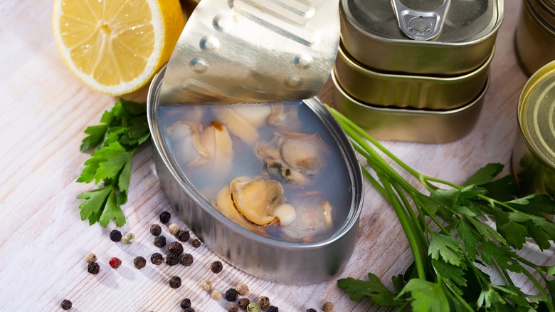 Clam juice also packs quite a bit of salt, so keep that in mind if you're working with other salty ingredients. What really makes this ingredient stand out, though, is its slight sweetness that can really bring your whole Bloody Mary drink mix together. Sure, it may not be the most common addition on this list, but it's one that will seriously elevate your Bloody Mary into a cocktail that truly tastes special and unique.