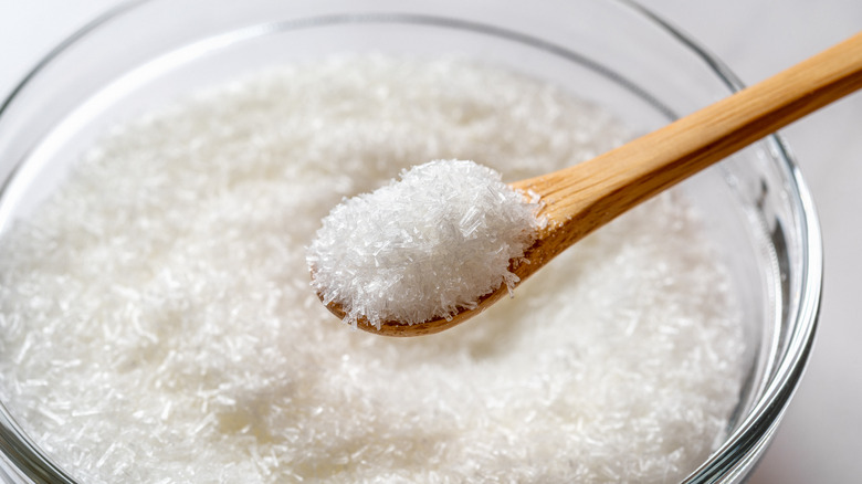 MSG is best known for adding an umami character to dishes, and since that's such an important component in a Bloody Mary, it only makes sense that this would be a smart addition. It's one of the easiest inclusions on this list, because you really only need a sprinkle of the stuff to make your Bloody Mary mix taste better than ever. Don't worry if you didn't add enough — you can easily stir it into the drink even after you've started sipping.