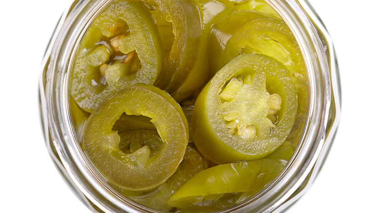 We've already mentioned that pickle and olive brine can work really well in your Bloody Mary, especially when you want to give it a touch of saltiness and acidity. Pickled jalapeno juice is an ingredient in the same vein. Most importantly, you're working with some additional acid, which can keep the beverage feeling as fresh as possible. There's also quite a bit of salt there to enhance the other flavors and give the drink the kick it needs. But, unlike the other briny ingredients included on this list, pickled jalapeno juice adds a touch of heat. And if you love spicy Bloody Mary's as much as we do, this is a must-add ingredient.
