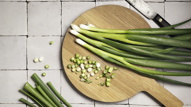 When you want to add a flavor boost to just about any recipe, scallions should be one of your go-to ingredients. Not only do they add a similar sharpness that onions are known for, but they also have a green, vegetal quality to them that just happens to pair especially well with the other ingredients you would traditionally include in a Bloody Mary. Plus, it's a great way to work more veggies into your diet — even if it's in the form of a cocktail.