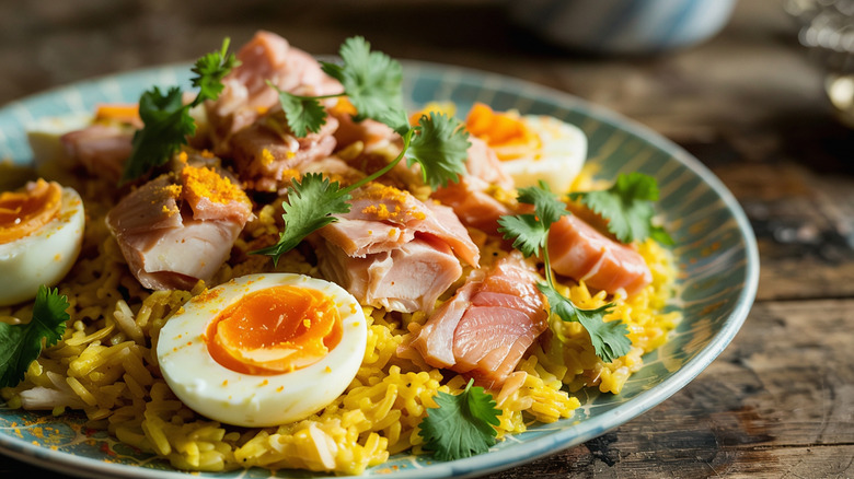 Kedgeree is a mash-up of two distinct cultures, and while it sounds like an odd mix of ingredients, it actually works pretty well. Modern fans of the meal, which is often eaten at breakfast or brunch time, say it is warming, comforting, and full of flavor. Many different variations of kedgeree exist today. In fact, you can even make the Victorian classic with plant-based ingredients, like smoked tofu and jackfruit.