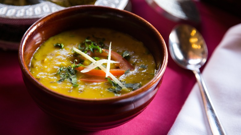Its origins are undeniably controversial, but in terms of flavor, the soup still holds up today. It's a hot and sour dish, made with ingredients like fresh curry leaves, cloves, red chillies, turmeric, garlic, and tomato purée. Mulligatawny is light and flavorful, yet still hearty enough to warm you up (an essential asset of any dish in both modern-day and Victorian England).