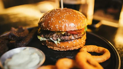 Now for the fun part: more toppings. For a Southwest-inspired burger, you could load your patty with serrano mayo, purple cabbage slaw, a fried egg, some herbaceous chimichurri, smashed avocado, and a slice of pepper Jack cheese. Or, keep it simple and smear that serrano mayo onto a classic burger lineup of leaf lettuce, tomato, and cheddar or American cheese. This bold condiment doesn't require any extra help to transform burgers into restaurant-worthy beauties. To complete the meal, pair these tangy burgs with a side of crispy onion rings and a chilled American lager or cucumber lemonade.