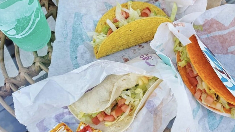 This is, of course, not unique to the Wendy's menu. The McDonald's Quarter Pounder with Cheese, for instance, doesn't stack up against the three-taco combo too favorably either. If you add in the fries that come with a combo meal, you are looking at 750 calories, 37 grams of fat, 13.5 grams of saturated fat, 1.5 grams of trans fat, 1330 milligrams of sodium, 10 grams of sugar, and 37 grams of protein. Again, this combo comes in as a high-protein fast food option, but it is also much higher in the fat, sodium, and calorie count categories. Clearly Taco Bell's Crunchy Taco beats out these burger joints in most metrics of nutrition. But how does it compare to the other tacos on the brand's own menu?