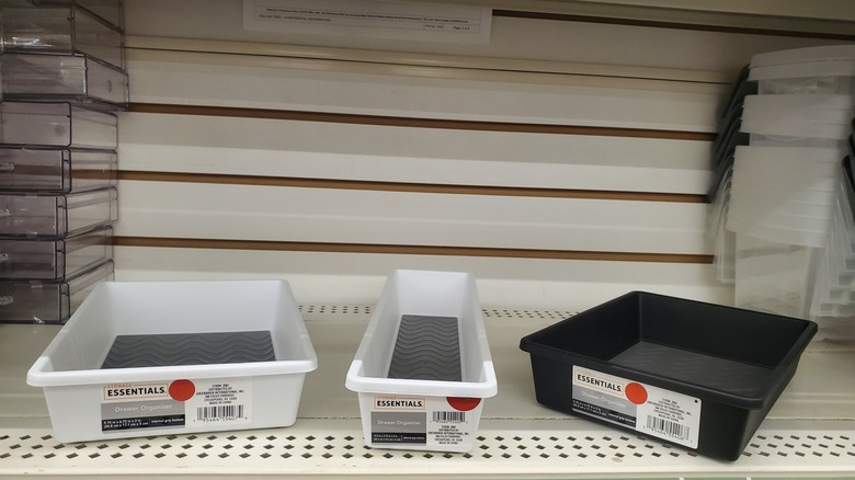 These drawer organizers from Dollar Tree are a really good buy. There are a variety of size and shape options available, allowing you to create a custom layout to match your specific storage needs and the amount of space within each of your kitchen drawers. You can also find these in white or black, which can help you better coordinate the look of the inside of your drawer with that of the rest of your kitchen.
