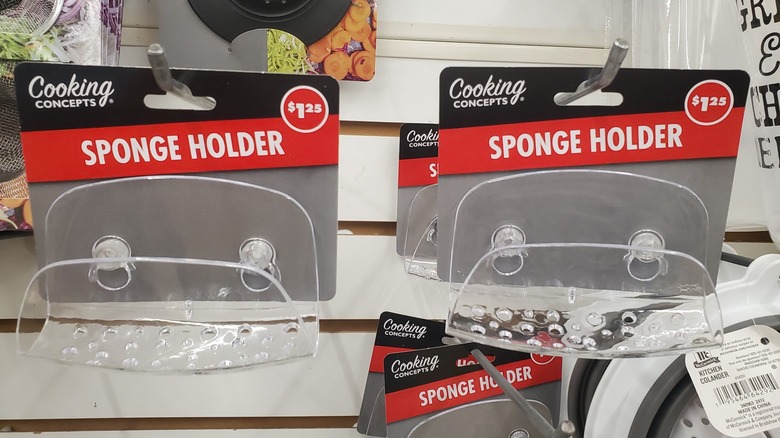 If your kitchen sponge is always ending up down the kitchen counter or on the bottom of the sink, then you can find an affordable solution from Dollar Tree. Pick up one of these sponge holders, and you'll always have a spot to return it to after you've finished scrubbing a pot or pan or making sure that your dishes are ready for the dishwasher.