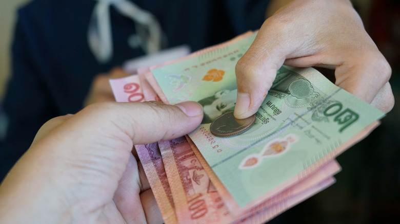 For starters, don't be surprised if there's a significant language barrier with the staff. Some restaurants get around this by giving you a piece of paper and a pencil to note down your order to avoid miscommunication. You'll also find restaurants that have drinks and snacks set out on the table for you to help yourself and pay for at the end. It's also common to have a water and ice station available, where customers are expected to get up and serve themselves. When it comes to paying for your meal, you may have to specifically request your check — say "check bin krap" if you're male, and "check bin ka" if you're female. You might need to go up to pay at the counter. Also, don't assume you'll be able to pay with a bank card — Thai electronic payment systems are becoming more prevalent, but most only work with Thai bank accounts.