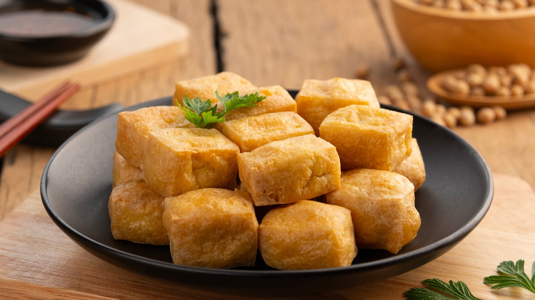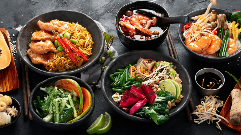 First, tofu is extremely common in Thai cuisine — some dishes combine it with meat while others make tofu the star of the show. Second, many dishes allow you to pick your protein, so you can always ask for the tofu and veggie version. There are some exceptions, but meat is rarely what makes Thai food so flavorsome, so you're not missing out by picking the vegetarian option. There are many Thai salads as well; however, many of these are meat-based, so be sure to double-check what you're ordering. The phrase "mang sa wirat" means "no meat" in Thai, so feel free to drop that in to be on the safe side. Unfortunately, vegans may have a bit of a trickier time with Thai cuisine because many dishes contain the likes of fish sauce, oyster sauce, or shrimp paste. It's more common to find vegan Thai restaurants these days, but they're rare outside of larger towns and cities.