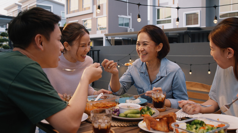 If you walk into an authentic Thai restaurant and take a look at the locals, you'll probably notice their table is covered in a huge assortment of dishes. This is because, for the most part, Thai dining is a group effort. Although Thais will sometimes order a single meal for themselves, it's far more common for the party to order a selection of items to share.