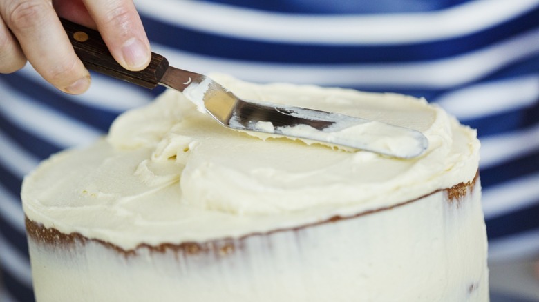 In addition to looking nice on the outside of a cake, sugar has very low water activity. That means there aren't many water molecules available in frosting, because it binds moisture and holds it. That's part of how simple frosting evolved into the art of cake decorating today. Look at a typical recipe for simple buttercream. It's almost entirely made of fat and sugar. That combination inhibits the growth of mold and bacteria, so when you frost a cake, you're protecting it from them with the barrier of sugar on the outside.