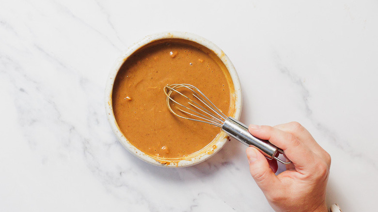 - Whisk dipping sauce ingredients until smooth, adjusting consistency with water.