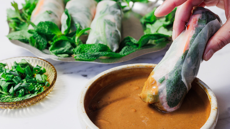 Whether it's a change of protein or some additional flavors you're after, there is plenty of room to customize these summer rolls to your liking. Our number one favorite thing to do with these rolls is to add some heat. Whisk in a few teaspoons of sriracha or Sambal Oelek into the peanut sauce, or, if you're brave, add in a few slices of thinly chopped fresh Thai peppers into the rolls themselves.