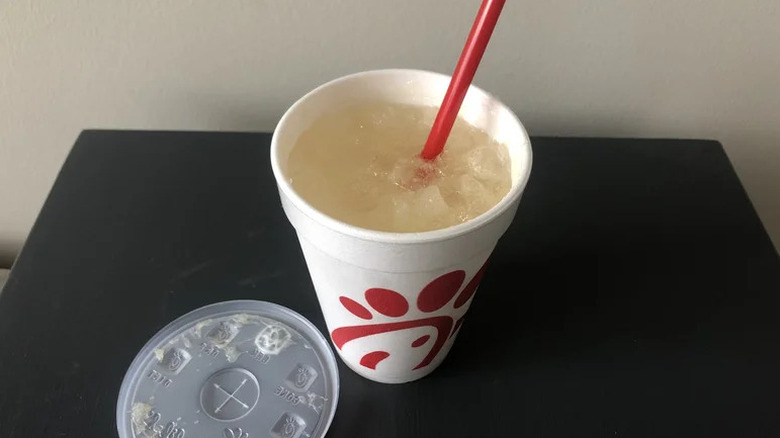 Other than simple lemonade, Chick-fil-A is known for its beloved Frosted Lemonade, which involves a combination of lemonade and signature ice cream (though any Chick-fil-A soda can become a frosted beverage with this secret hack). The limited-time Watermelon Mint Lemonade took the internet by storm when it was introduced in 2017, and though it's not available year-round, there are still options for strawberry syrup and peach syrup. Not to mention the spin on the Arnold Palmer called the "Sunjoy" or the option for a plain diet lemonade with Splenda sweetener instead of cane sugar.