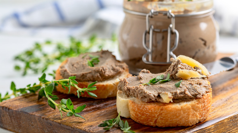 Cheese, crackers, nuts, fruit, and sometimes jam are the common foods that make it onto any given charcuterie board. As delicious as a chunk of brie and fresh grapes taste together, there's another food that should certainly be included. Although it might not be as common, pâté is meant for charcuterie boards and will offer a textural contrast to those crunchy crackers and semi-hard cheeses.