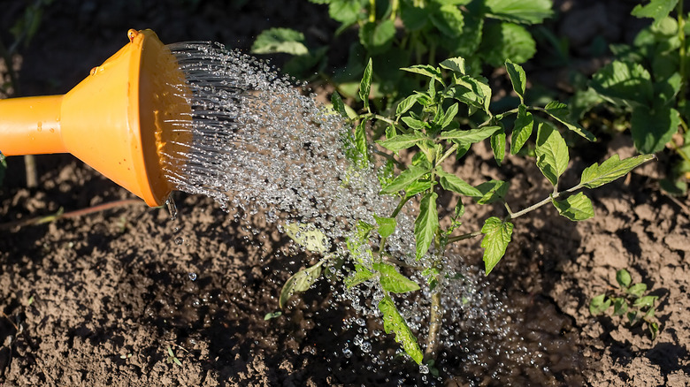 If you water a plant for a few seconds, the top inch or so of soil will get wet. This isn't a problem for shallow-rooted plants, but for tomatoes, you want the water to get much deeper. The soil may look moist, but at the roots, it will still be dry. Exactly how long you should water depends on many factors, such as climate and plant size. However, if your plant's soil is drying up a day after watering, it's a sign you're not watering deeply enough.